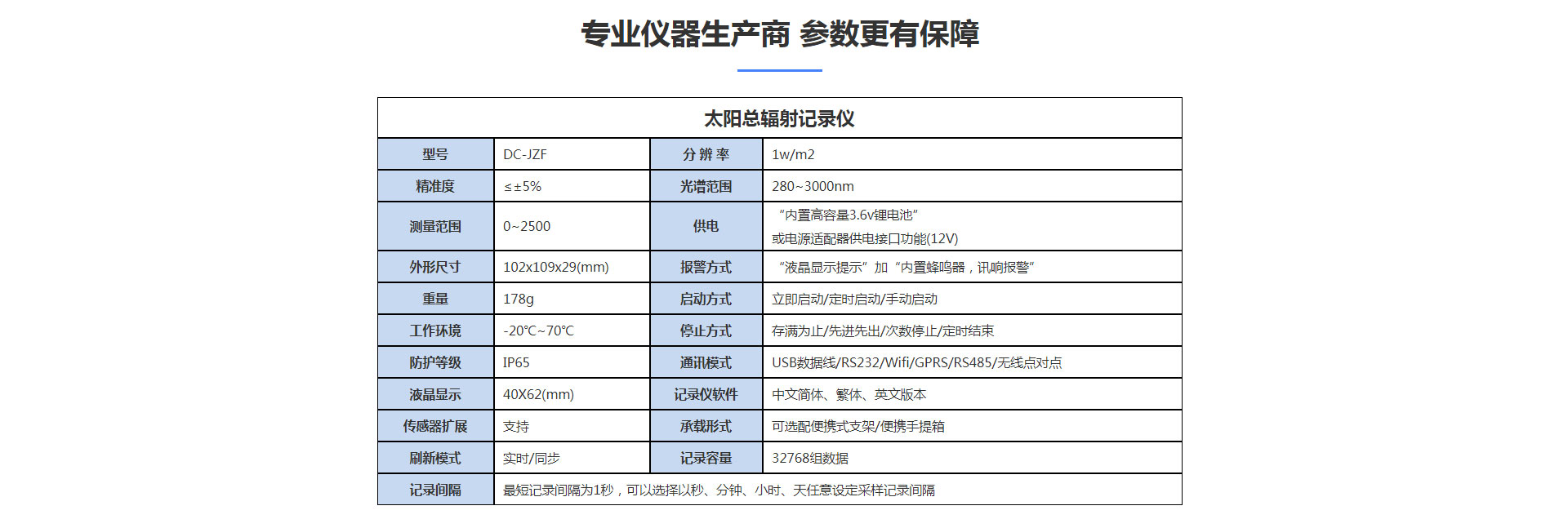 tbq-2系列總輻射表參數(shù)配置表
